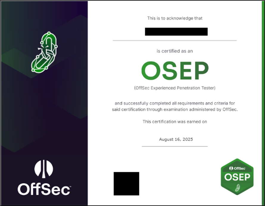 OSEPは、OffSec社が提供する上級レベルのペネトレーションテスト資格で、特に大規模なActive Directory環境に対する侵入・展開や、Microsoft DefenderやAppLockerなど標準的な防御機構の回避に焦点を当てた内容になっています。