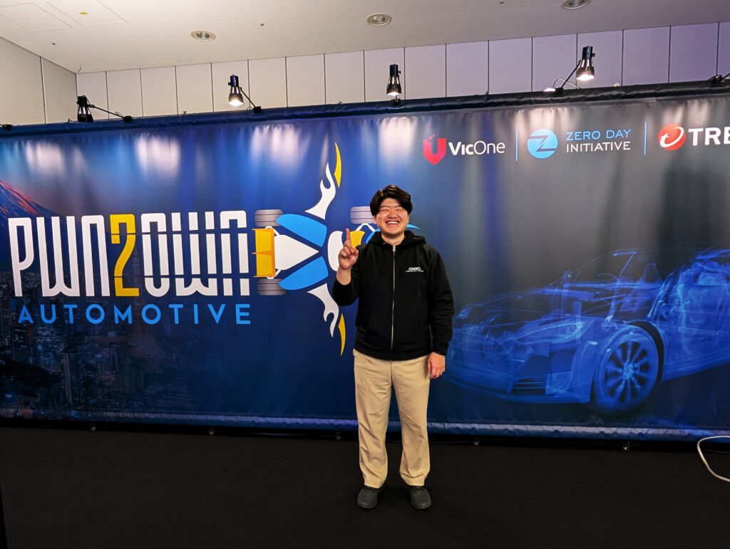 2026年1月21日~1月23日に東京ビッグサイトで開催した「Pwn2Own Automotive 2026」に当社エンジニアの古川 和祈が出場しました。「Pwn2Own Automotive 2026」はVicOne株式会社とトレンドマイクロが運営する脆弱性発見コミュニティ「Trend Zero Day Initiative(ZDI)」が共催する自動車テーマに特化したゼロデイ脆弱性発見コンテストです。