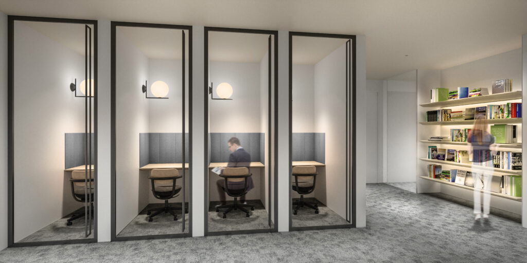 専門書や最新の書籍を揃えた「GMO Library」も併設し、学びの場を提供します。